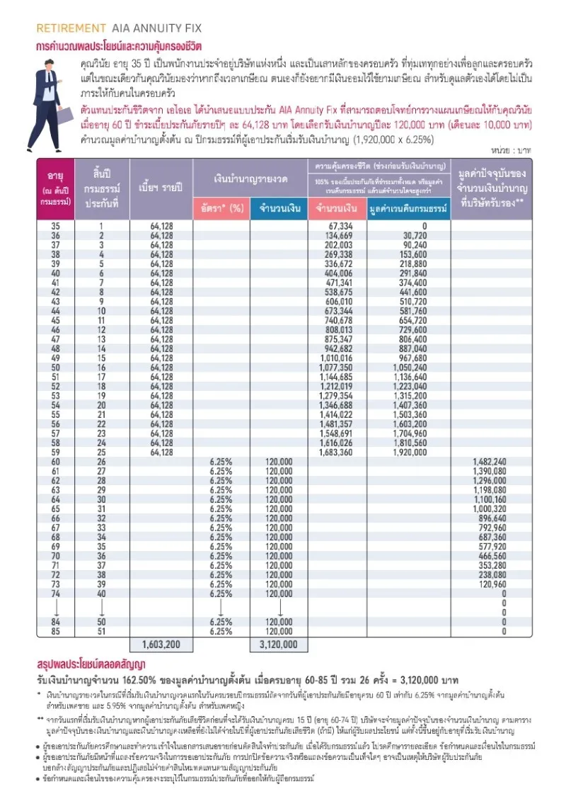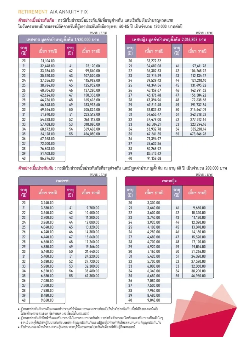 รายละเอียดประกันบำนาญ AIA Annuity FIX